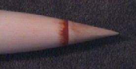 Simply glue them together and paint them with CA. I also filled the space between the very tip of the extension and the round top of the plastic nose cone with epoxy. (I know this adds weight, but with these military styled kits and their close CP/CG relationships that is a good thing.) The extension is glued to the nose tip. Body filler and sanding will produce a smooth joint.