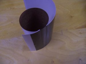 The external airframe was assembled in three distinct sections. The aft section is a short section (1 in) of BT-80 tubing with six equidistant spaced holes for LEDs. The section also has a spacer and a coupler section that are installed to establish a groove on the inside of the BT-80 tube to house the LED wiring harness. The second airframe section is a piece of BT-80 tubing (4.875 in) that couples to the aft section using the coupler segment (do not glue together) to complete the aft section. The third section is the fore section, a 6 in piece of BT-80 tubing with six more equidistant spaced holes for LEDs, which will also house the parachute and nosecone. Before any further assembly, the adhesive-backed vinyl coverings were wrapped around the external airframe tubes. The amount of vinyl was just sufficient to cover the tubes, so careful alignment of the vinyl sheets was required. To wrap the body tubes I trimmed the paper backing (both layers) off the edge of the dark gray vinyl wrap that would correspond to the end of the body tube cylinder. By removing a strip of the backing paper in the middle of the wrap, I could set the body tube upright on a flat table top, wrap the vinyl around the cylinder, aligning the trimmed edge with the cylinder end on the table, and make adjustments to the alignment, as I could reposition the vinyl because so little was in contact with the body tube. Then it was just a matter of removing the rest of the backing paper and carefully smoothing out the bubbles. I used the same technique on the silver accents (a spectacular feature), trimming the end of the decal that circumnavigated the cylinder when applied.