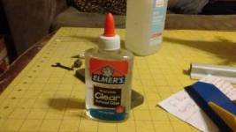 Glueing together of the last couple of pieces. For the sake of the paint, I am using Elmer's washable Clear school glue.