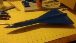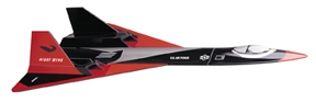 An interesting looking fighter jet style rocket from Estes. It uses the SR-71 kit nose cone, and main body tube. Most everything else is unique to the kit.