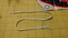 Next is the last flight step, the parachute. The existing shroud lines broke while I was assembling the chute, so I had to sub in a replacement.