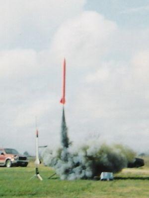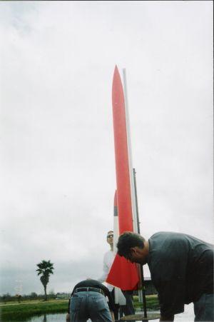 Finally a launch window opened up on none other than January 1st, 2005. What a way to start the new year! On 1/1/5 I launched this rocket at Alpha Ranch in Waller County Texas on a Cesaroni Pro54 J-380 Smokey Sam with a manually set 6 second ProDat54 bored delay.