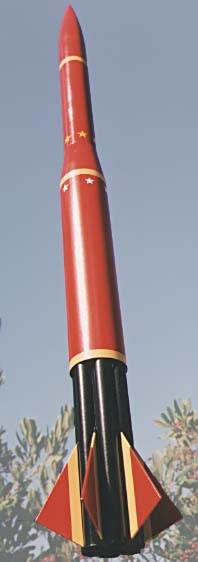 This is the Loc/Precision Stovi. Kit information and a full-size picture of the front of the package is here. This kit went together nicely. The directions, although short were fine and the kit was well designed and the parts well made. The only annoying thing about this kit is that it has a 24mm motor mount and expects to fly on F and G motors. It would be more appropriate for this rocket to have a 29mm motor mount. (No single-use 24mm are currently available for it.)