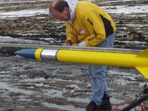 So then on February 22, 2004, I prepped the rocket for flight and loaded her with an Aerotech J570. This is probably my absolute favorite "Easy Access" motor and may be my favorite of all time. They always seem to light with real authority and have serious lifting power! I selected a long delay as a backup to my electronic deployment system.