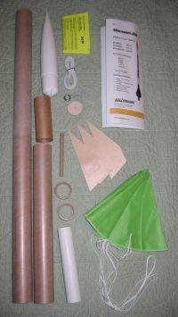 Single stage, 14" parachute recovery at apogee using motor ejection. Two airframe BT's (27", 13"), 1.6" LOC nose cone, 3-plywood fins, 2- paper centering rings, LOC-type 29mm motor mount tube (8"long), 1 coupler, bulkhead, and eye screw. You also receive a length of 1/4" elastic for a shock cord. No decals. Instructions are straight forward. I always expect good things from Barry. The ...
