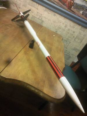 Mostly stock build of the Estes update of the old Centuri design, though I added an ejection baffle per the original. This rocket is now finished and flight ready, though it'll probably be a long winter before it does fly. I painted it in the traditional livery, with the exception of making one fin pair red to give it even more of a sounding rocket look. I'm slightly disappointed that the red in the kit's decals isn't more opaque. It looks ok over white paint (if ever so slightly pinkish), but the red decals applied to the black fins are definitely muted, not as bright red as I'd hoped. Otherwise, its an excellent kit and builds well.