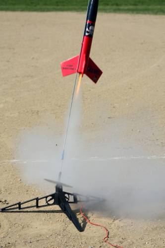 2011-05-28Estes Patriot  Flight With the B6-4, the Patriot flew straight up with minor twisting and reached appogee rather quickly. Ejection caused minor burn holes in the plastic chute, so for the next launch we used additional wadding.... boy that tube is long. The Patriot was successfully launched 3 times today ... [More]