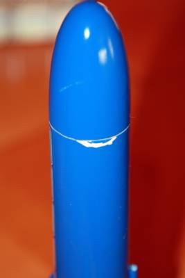 With the B6-4, the Baby Bertha flew straight up and reached appogee rather quickly.  Ejection caused minor burn holes in the plastic chute, so for the next launch we used additional wadding.  The Baby Bertha was successfully launched 3 times today and survived with minor damage to the body tube.