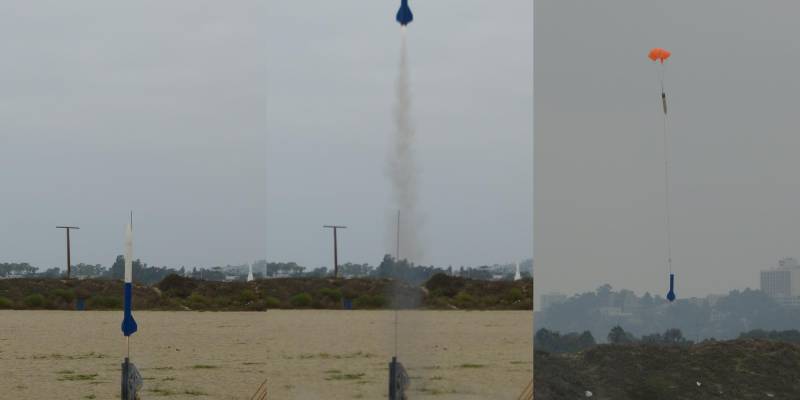 Test flight for tiltalt; good ascent, chute slightly tangled but that kept the rocket on the field (barely)