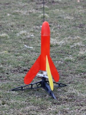 Both my first and second flights were off an Estes Porta-pad using a 3/16" rod. It wasn't pretty, but it worked. Even though this is a big rocket, it can still be flown on pretty small fields.