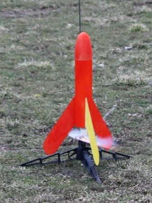 This is a 5x upscale of the Estes Mosquito suitable for mid-power motors. It is an excellent first mid-power rocket.