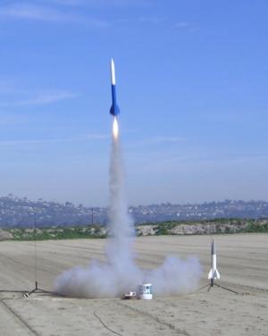 Recovery was perfect. I was a little concerned that the 36" chute would be too small for the rocket, but the descent rate was just about right. No damage landing on packed sand. The shock cord was very slightly scorched in a couple of places near the bottom, but should be fine for many flights.