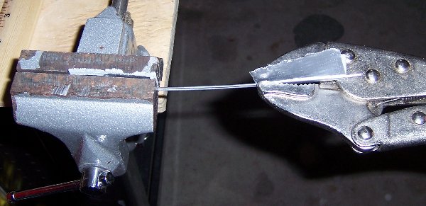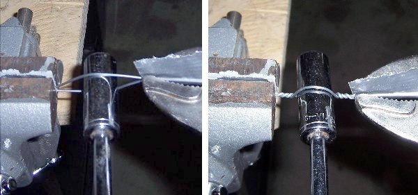 While firmly holding the vice-grips I turn the rod 2 times or until most of the slack is taken up and the loop is almost round. Do not twist the wires too tightly or they will break or become weakened.