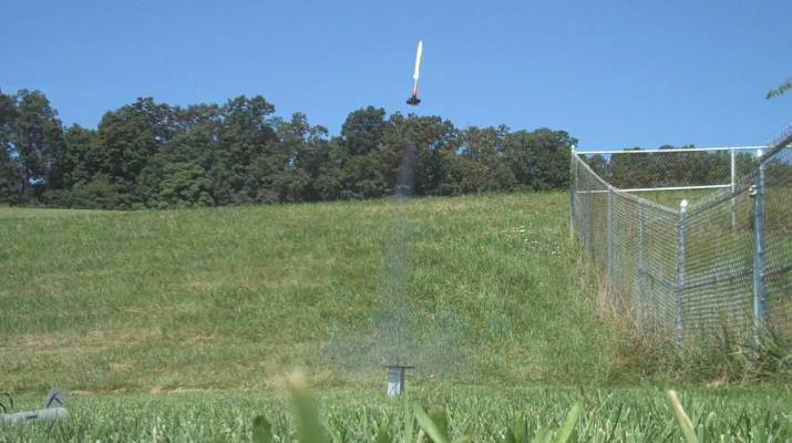 Nice quick plast to about 900 feet. 7 second Delay was a little long for the launch angle. Landed in football field, softly.