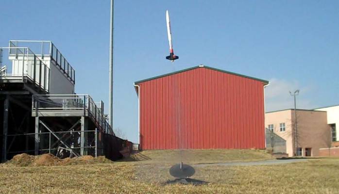 A very quick liftoff. The 7 second delay being about perfect. Too bad it landed it the parking lot and got pretty beat up. It's still flyable though.