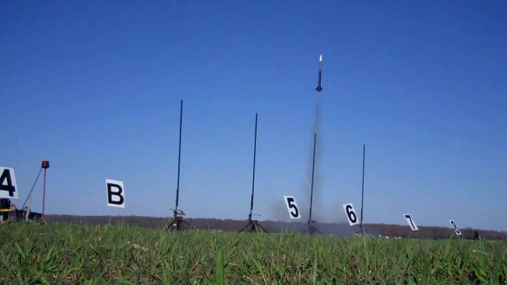 Long burn blue thunder motor put it nearly out of sight.  Could see a faint blue/purple flame from below after it started to scoot.