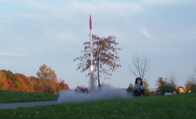 Pretty good roar off the pad. Straight up to 1300'or so. Took 2 second off M delay. Backslid a little before ejecting.