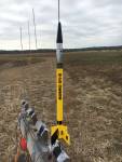 Estes Yellow Jacket  Flight Nice straight boost, stayed under the clouds, arcing over at the top of the climb, nose up at ejection. Good chute, short walk, no damage. - B6-4 - SEARS [More]