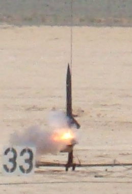 Perfect flight of the BS! Great boost, dead straight off the rod. Nose up, stalled out perfectly, ejection at apogee. Good chute, minimal drift, landed about 100 feet from the pads.