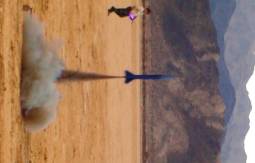 Quick re-pack and re-load for flight number 2.  Nice boost, quick off the pad and arcing into the wind.  Still nose up, mostly horizontal at ejection.  Good chute, moderate drift, lakebed landing, no damage.  Jolly Logic Altimeter One on board for data.