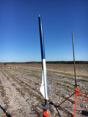 Had originally planned to fly an I161W but the upper level winds made me nervous so I assembled the smaller H130W and took it to the pad. Great flight, boost was quick and straight. Good drogue deployment at apogee, hard to track a smaller blue and white rocket, but I was able to keep track of it from the sunlight flashing off the clear coat. Good main chute at 500 feet, rocket landed on the field with no damage.