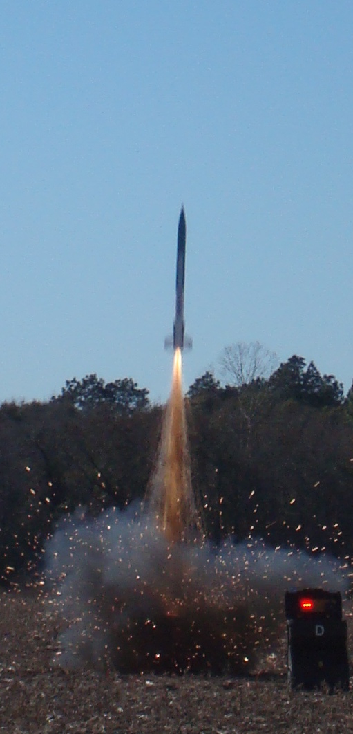 Another nice sparky flight. Had some trouble with the launch relay and then the igniter didn't do its job the first try. Second igniter did the trick. Loud and proud off the rail with a nice little echo off the trees. Good drogue deployment at apogee, not drifting much coming down. Good main deploy at 500 feet. Landed just beyond the creek un a patch of corn that the harvester had missed. No major damage, the upper payload body tube took a hit, looks like from one of the fins, should still be servicable.