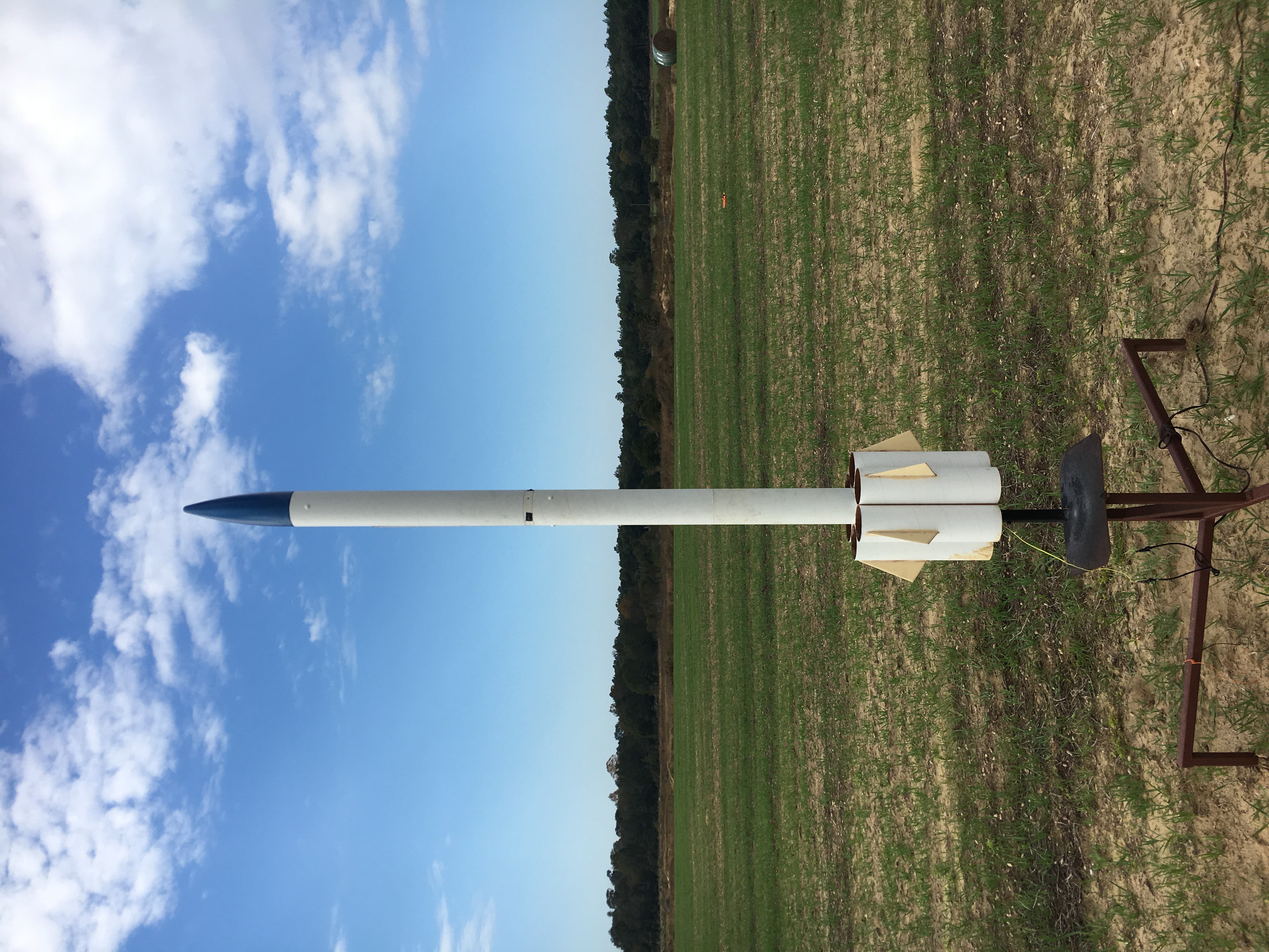 4" Upscale of the Estes Super Neon. 54mm Motor Mount, Dual Deploy with dual Pefrectflite Altimeters.