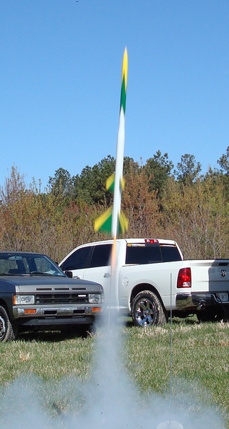 Finally got to fly at the big field! Great boost on the D12, fast and high. Arcing into the wind, not quite to apogee at ejection. Good chute, medium sized walk, grass landing, no damage.