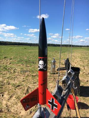 Re-released version of an Estes classic. Basic 3FNC design with the well known "Toungue in Cheek" German military styling. 18mm motor mount and an 18" parachute.