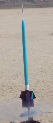 Not quite straight off the rod, boosted at an angle. Arcing over, horizontal at ejection. Minimal drift, caught it on the fly. Small dent in the lip of the body tube, most likely from contact with the nose cone at ejection. Repaired in the field.