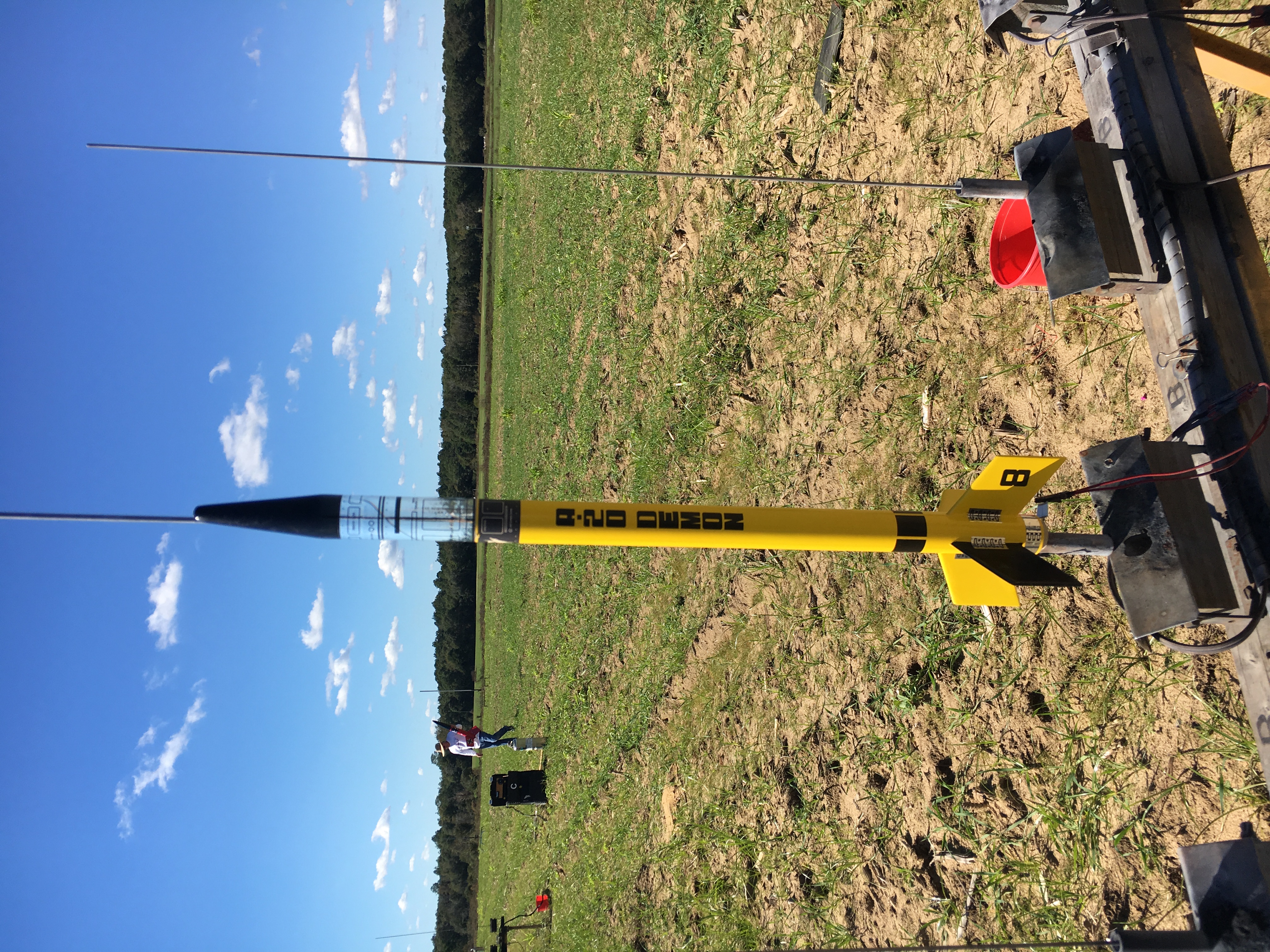 Another rocket that doesn't see the flight line much. Another great flight, smooth and straight off the rod. Nose up, stalling out at ejection. Good chute, short walk, landed on the field with no damage.