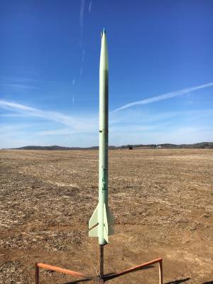 A 4" fiberglass kit with split fins, avionics bay, and 75mm motor mount.  As built for my L3 cert flight the avionics bay contained a Missileworks RRC3 and a Perfectflight Stratologger CF.  Recovery harnesses were made from 1/4" tubular Kevlar, with a 24" drogue and 84" main from Spherachutes.