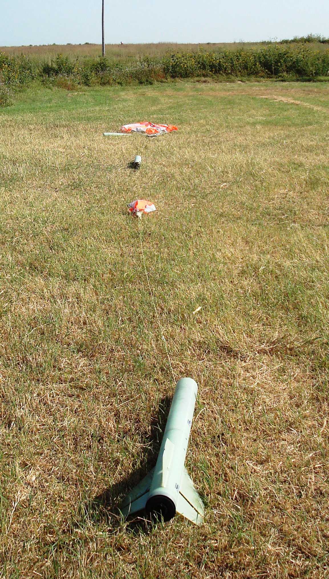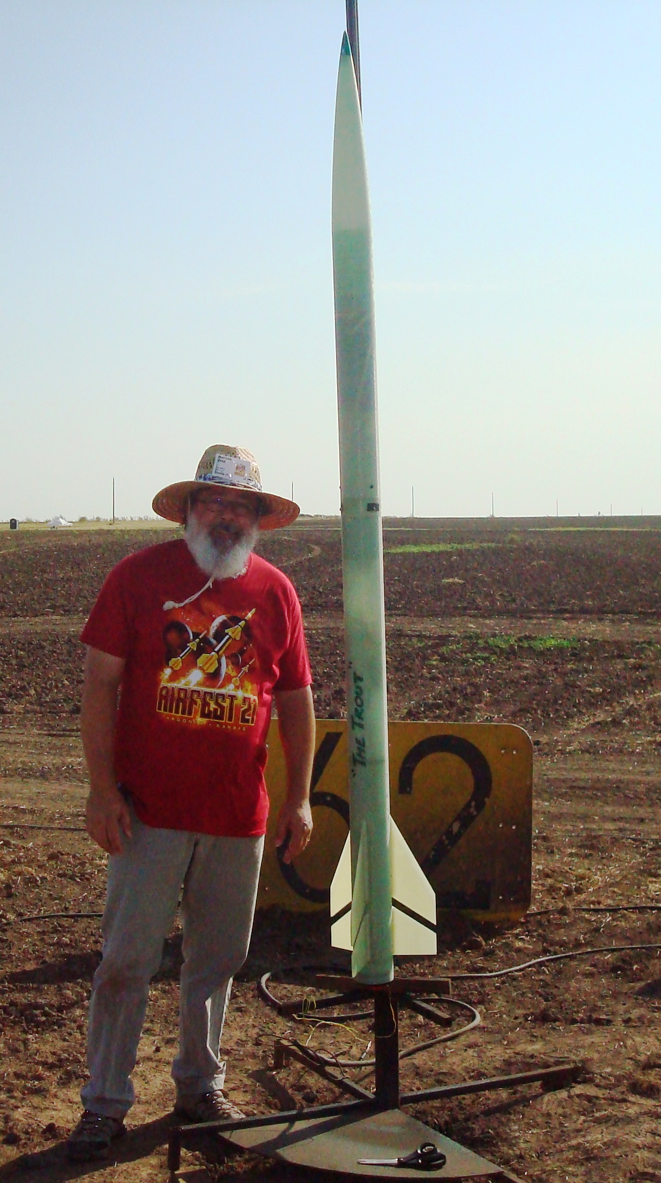 My Level 3 certification flight at Airfest XXI in Argonia, KS. I had grand plans for my first trip to Argonia, which included my L3 cert and many other awesome flights over the full four days of the launch. Reality and my deliberate approach to building my L3 bird conspired to ruin those plans. The short version of the story is that by the time I arrived in Argonia, the Frenzy XL was only about 40% complete. I spent the first three days of the launch in my hotel room completely consumed with finishing the build. I made a trip out to the field late Sunday to get some help setting up my RRC3 altimeter and then went back to the hotel to build the motor and get some sleep. Back to the field Monday morning, still quite a few folks around but I'm sure much less than the weekend crowd. Got my paperwork in order, went through the RSO checks and headed out to the pads. Rocket prep on the pad was smooth and we headed back to the flight line, with nothing left to do but wait for the countdown. The motor lit right away and "The Trout" roared off the pad and was quickly out of sight. Standing on the line with the tracker trying to get a good fix, I had a strong signal but couldn't get a good directional fix. Right about the time it dawned on me that the rocket must be right over my head, I heard the main charge go off and looked up to see the main chute deploy perfectly. Rocket landed in the grass near the end of the line, probably 150 yards away from where I was standing. Post flight inspection revealed no issues and the cert was in the bag. In hindsight it was probably fortunate that I hadn't flown on the weekend since the spot where I landed was the overflow parking, but things worked out for the best. After the excitement wore off I briefly considered prepping more rockets to fly, but the weight of the entire weekend finally caught up with me and I decided to just hang out and watch some flights before packing up and heading home. Now it just needs a paint job.