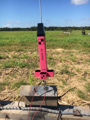 A mini-engine powered square "tube-fin" sport rocket, built primarily by my 9 year old daughter, and painted by Dad according to her specifications.