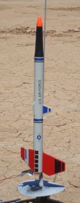 Nice fast boost with a little bit of tail "wiggle" while under thrust.  Arcing over at the top of the climb, still nose up at ejection.  Good chute, minimal drift, caught it on the fly, no damage.