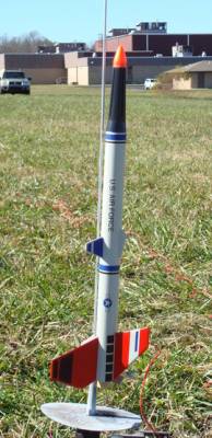 Another nice flight from the Evader! Great boost, quick and straight. Nose up, just stalling out at ejection. Good chute, minor drift, grass landing, no damage.
