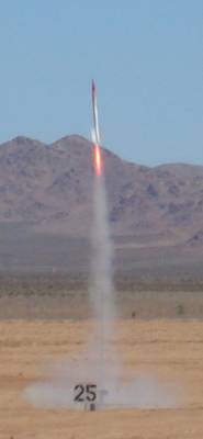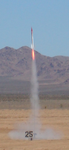 Great flight of the upscale Cherokee. Swapped out delay elemet. Nice boost, straight and fast. Stayed nose up the whole ascent, just stalling out at ejection. Good chute, long walk, lakebed landing, no damage.