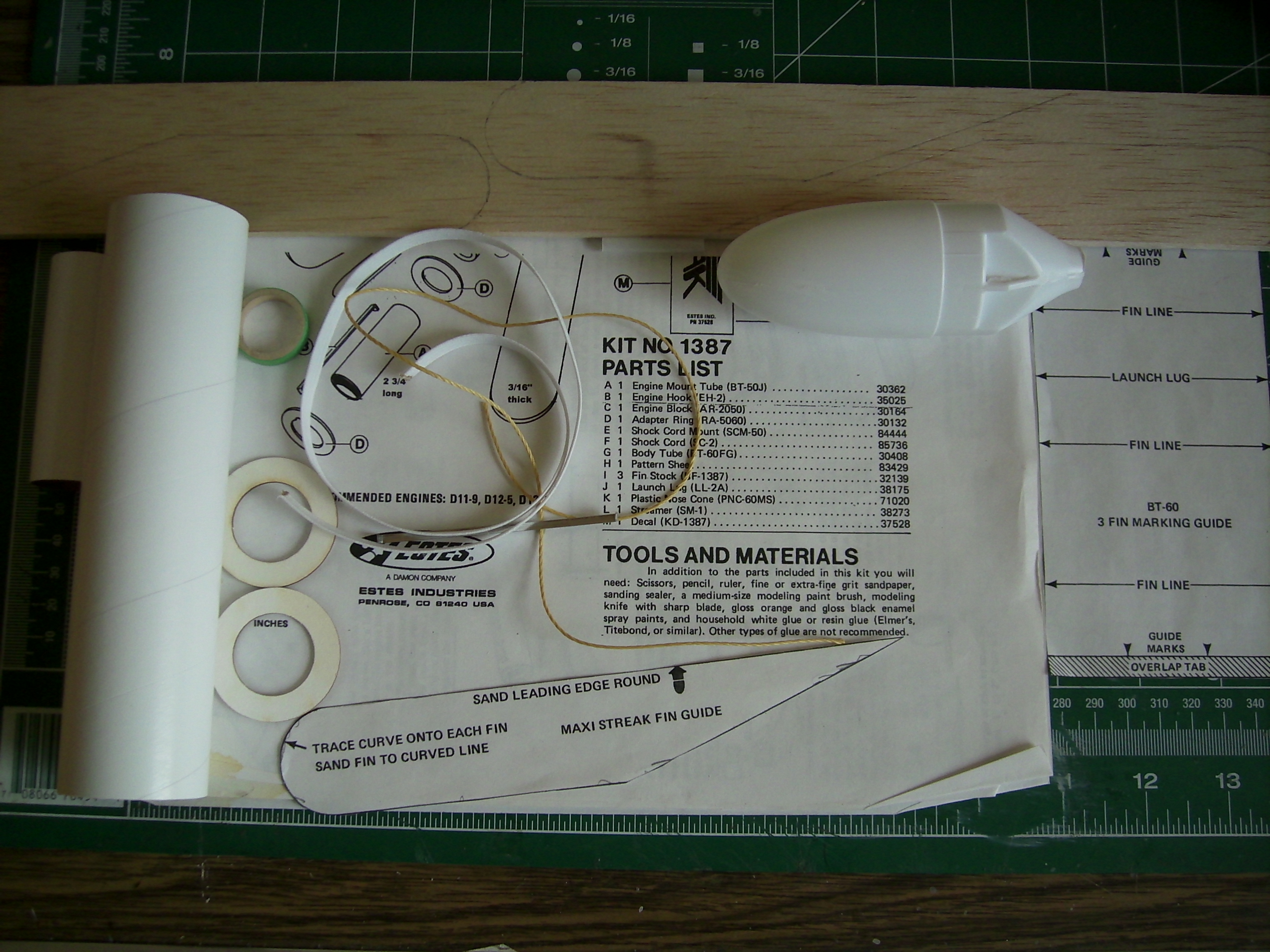 The Estes Maxi Streak #1837 ran from 1982 to 1984. It was rated as a sports flier and was a single-stage, low-power rocket. It was recovered using a 90" streamer. You can use a engine adapter to fly this rocket on 18mm engines. Components Here are the components used to assemble the rocket: Engine mount tube BT-50J 2.75" Engine hook EH-2 ...