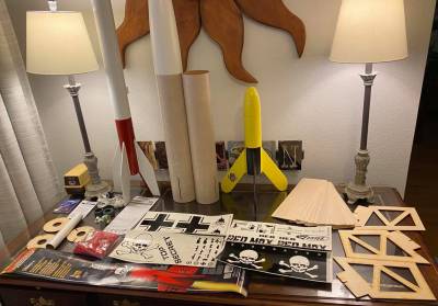 Included is the Super Big Bertha, going into paint so it will look like the 1969 Big Bertha. Also included is the Mega Mosquito decaled as the Mega Brute – decals by Chris Michielssen - Model Rocket Building: Mega Mosquito Finished. The Mega Brute is a work horse and has faded and chipped paint. It even survived several launches at LUNAR where rockets land on pavement at NASA Ames. I included these as all the fins were laminated with Titebond II, which I'm open to being convinced otherwise, but I'm planning to do the same with the Mega Der Red Max…