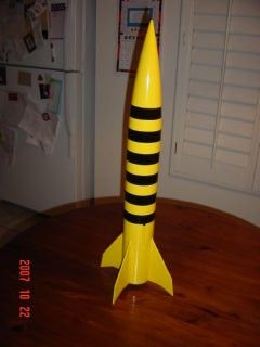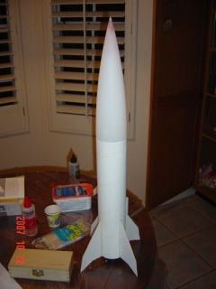 Construction was straightforward, following most conventional techniques. No alignment issues, fit issues, or other "gotchas" surfaced. Quality wood glue was recommended throughout, which I am sure is the best way to produce a lightweight sturdy rocket. So of course, we frequently substituted epoxy, which had a couple advantages perhaps unique to my situation: a maximum set time of 5 minutes (the approximate attention span of my son) and seriously annoying any women of the female gender in the house that were simultaneously offended by the odor and the fact that we were using this smelly goo on the same table they intended to eat dinner at. Good times.