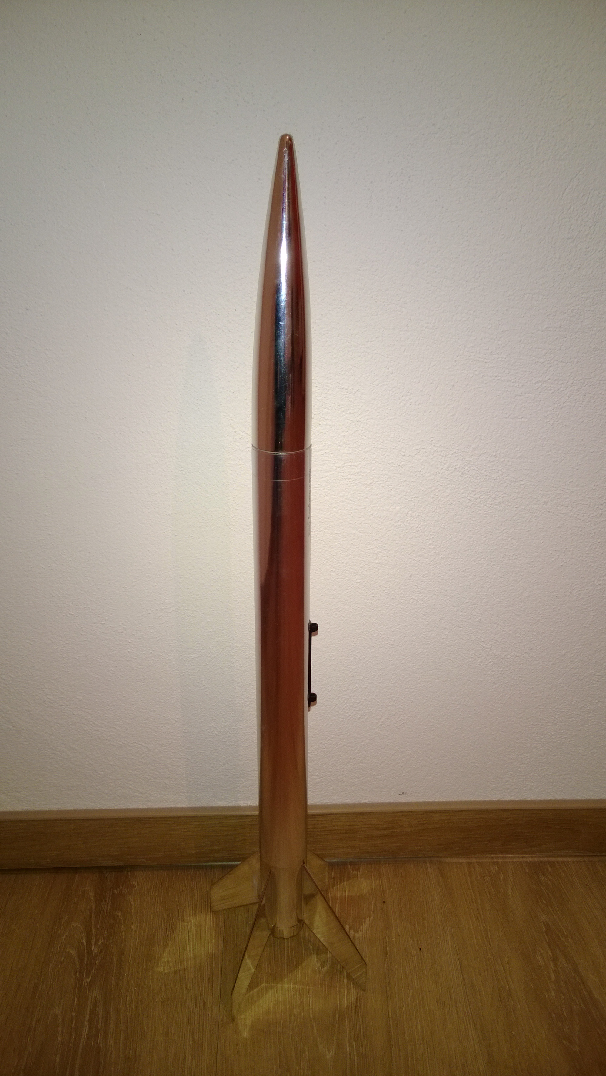 E2X single-stage rocket kit with silver metallic finish. Components Components: Nose cone Body tube (launch lugs and elastic shock cord pre-installed) 2-piece plastic fin and engine module Parachute Construction is quick and easy. Glue the 2-piece plastic fin/engine module together Glue the body tube to the fin/engine module ...