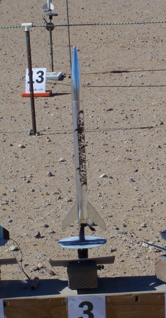 Brief: E2X single-stage LPR with parachute and plastic fins. Construction: Parts list: 1 body tube 2 fin can halves (with fins pre-assembled) 1 plastic nosecone 1 plastic parachute (pre-assembled) 1/8" launch lug (pre-attached) Construction is extremely easy. This is how it goes: Glue two fin can halves together. Glue fin can into ...