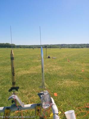 Weathercocked a little but not bad. If there were a closest to the flagpole contest it would have been a contender at about 8 feet. The first rocket in the next rack looked like it came down in a similar location, but did it stick the landing? Mine did. I should’ve taken a photo before picking it up; oh well.