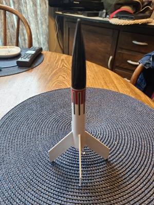 Brief: The Micron is a small and simple rocket with 4 fins and a nose cone intended for 13mm motors. It is not minimum diameter but its also not much more than minimum. It comes with some orange flagging to serve as a streamer but would probably do just fine as a nose-blow. Most of my recent project have involved making repairs but you can only sit around waiting for glue to dry ...