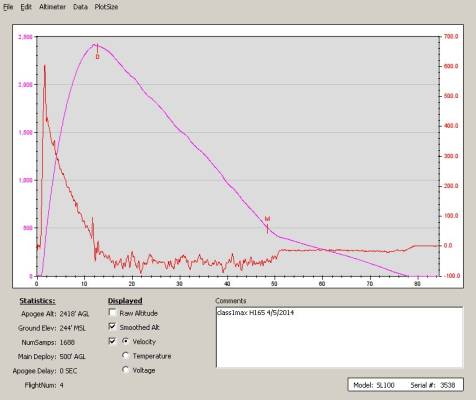Maiden flight. Very nice, GPS stayed in lock, landed about 0.3 miles east. Rocket recovered by another flyer and brought part way back.