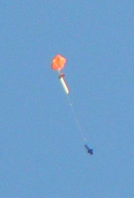 Stock DX3 on CTI Pro29. Faster liftoff than I was expecting; chute shroud lines wound up, but no damage.