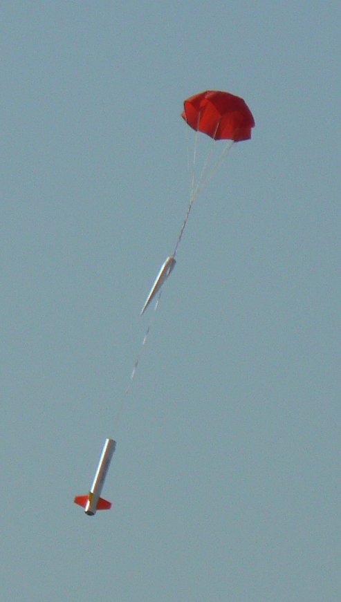 First flight; fast and straight.  Slight nose cone damage from hitting a fin on rebound.