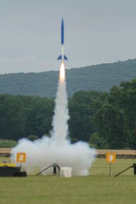 Rocket had perfectly straight, quick boost with a nice sound and lots of white smoke. Rocket looks awesome boosted by this motor. Got up to about 1500-2000ft, not altimeter was used so I am unsure of the actual altitude. This was a perfect flight which led to my level 1 cert. This rocket always boosts nice and straight!