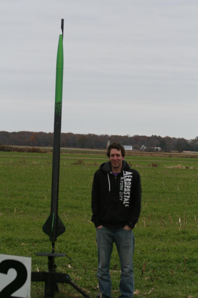 This was my second attempt for my level 2 certification. After taking the test and getting everything set-up, I was forced to wait for the cloud deck to clear, as it was only about 1200ft later in the morning. At about 2pm there was a nice hole in the deck and I decided to give it a shot. The Red motor propelled the rocket dead straight at a good speed, getting it to it's apogee of just over 3000ft. After the first event, the rocket decended drogueless to about 500ft, where the second charge popped out the main perfectly. Landed a few hundred feet away from the pads for a succesful level 2 flight!
