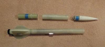 This is a bulletproof fiberglass kit that's relatively light and should fly well on anything from an F to the biggest 29mm motor you can get. My only complaints are the stock shock cords are a bit too short, the optional parachute is likely a little too small, and the avbay is tight (though it's long enough, it wasn't clear to me how a conventional all-thread layout was supposed to work unless you were using batteries more compact than 9V.)